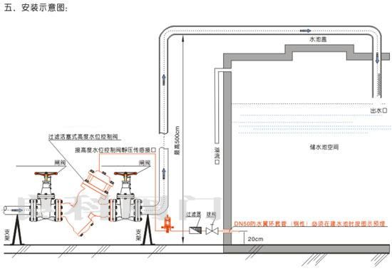 一、概述: 過(guò)濾活塞式高度水位控制閥利用水箱(水塔)設(shè)定的高低水位的靜壓水頭之差,通過(guò)水位高度導(dǎo)閥來(lái)控制主閥敏感元件活塞的上下運(yùn)動(dòng)以達(dá)到主閥的啟閥。當(dāng)水箱的水位升到設(shè)定的高水位時(shí),主閥關(guān)閉,停止向水箱供水;當(dāng)水箱下降到低水位時(shí),主閥打開(kāi),向水箱供水。通過(guò)調(diào)節(jié)高度水位導(dǎo)閥的調(diào)節(jié)螺桿,可以設(shè)定高低水位。 過(guò)濾活塞式高度水位控制閥廣泛用于建筑給水、消防、工礦企業(yè)上的水池、水塔、水箱代替以往的液面控制閥,而無(wú)需浮球(電浮球)和電器控制、純機(jī)械水力控制,安全可靠。