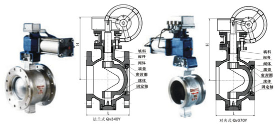 結(jié)構(gòu)特點(diǎn) 1、V型球閥采用蝶形彈簧或圓柱彈簧加載的可動閥座結(jié)構(gòu),閥座與V型球芯不產(chǎn)生卡阻或脫離等問題,密封可靠,使用命長; 2、V型切口球芯與閥座間有剪切作用,特別適用于含纖維、微小固體顆粒、料漿等介質(zhì); 3、球體與閥座密封根據(jù)工況不同,可分別采用軟密封、噴焊鎳基合金(硬度大于HRC60)、超音速噴涂鎢鈷合金(硬度大于HRC70)及特種硬化材料等多種先進(jìn)工藝,適用各種苛刻工況,軟密封適用200℃以下工況,硬密封碳鋼不超過425℃,不銹鋼不超過600℃。 4、蝸輪傳動具有精確調(diào)節(jié)和可靠定位功能,流量特性近似等百分比,可調(diào)范圍大,調(diào)節(jié)精度高; 5、全開時流通能力大,壓力損失小,介質(zhì)不會沉積在閥體中腔。