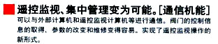 用于開關控制。能簡單的改變開關速度,除防止水錘外,在吸收式冷凍機開始運轉時,使用暖回路的開關系統和浮動控制器,可以進行壓力控制,閥門打開角度是0-90°。 |