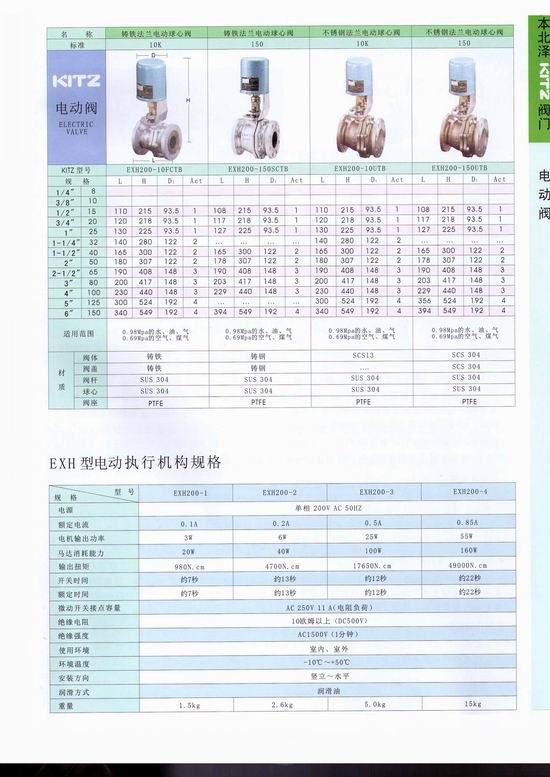日本北澤KITZ電動球閥是部分旋轉類球閥,旋轉90°即可全關全開,與相同規格的閘閥和截止閥比較,球閥體積小、重量輕、功能強大、可靠性高、便于管道安裝等。密封性能優良,流通能力大,流阻系數小,結構簡單、維修方便、使用壽命長。閥體通道和連接管徑相等并成一直徑,介質幾乎可以毫無損失的流過。產品通常用于密封要求嚴格的場合,除控制氣體、液體、蒸汽介質外,還適宜控制污水和含有纖維性雜質的介質。
