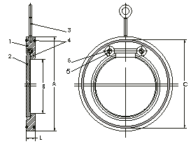 | ◆H74I型.Ⅱ型對夾薄形止回閥對夾旋啟式止回閥主要外形尺寸: |