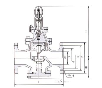 五、Y43H活塞式蒸汽減壓閥外形尺寸(PN1.6-4.0)單位:mm